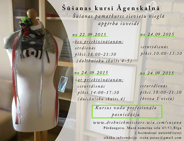 * nodarbību laikā tiek izmantotas specializētās šujmašīnas trikotāžas sašūšanai, nošūšanai;